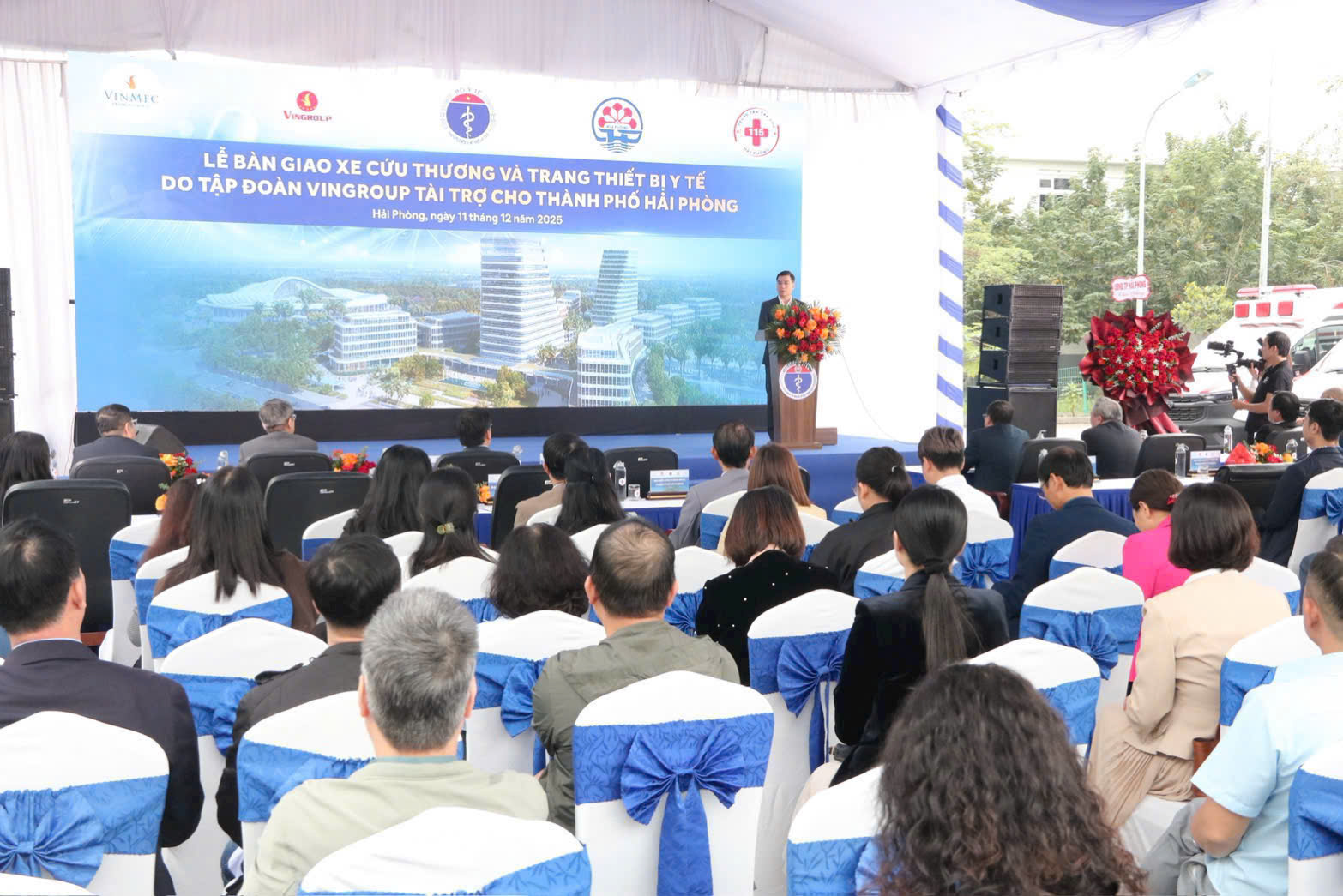 Lễ bàn giao xe cứu thương và các trang thiết bị y tế do Tập đoàn Vingroup tài trợ trong khuôn khổ Đề án thí điểm cấp cứu ngoại viện của Bộ Y tế giai đoạn 2025-2030 là nguồn bổ sung quý báu cho ngành y tế Hải Phòng, thể hiện rõ tinh thần trách nhiệm xã hội và sự đồng hành của doanh nghiệp với cộng đồng.