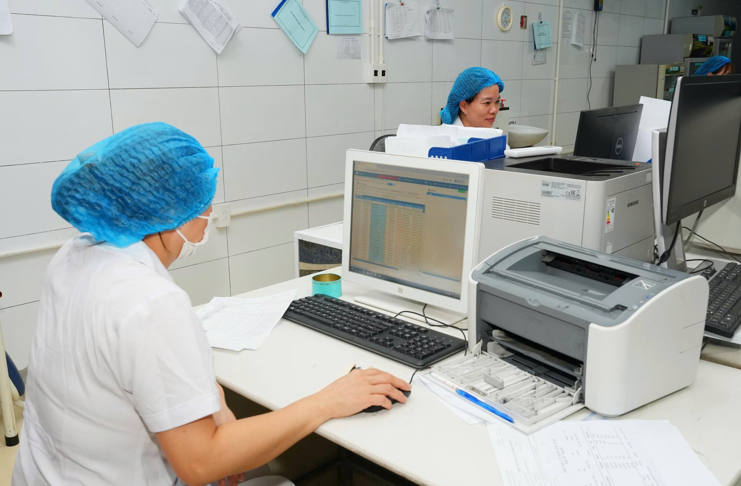 Cán bộ Khoa Xét nghiệm- Chẩn đoán hình ảnh Trung tâm Y tế Ninh Giang nhập kết quả lên dữ liệu lên bệnh án điển tử