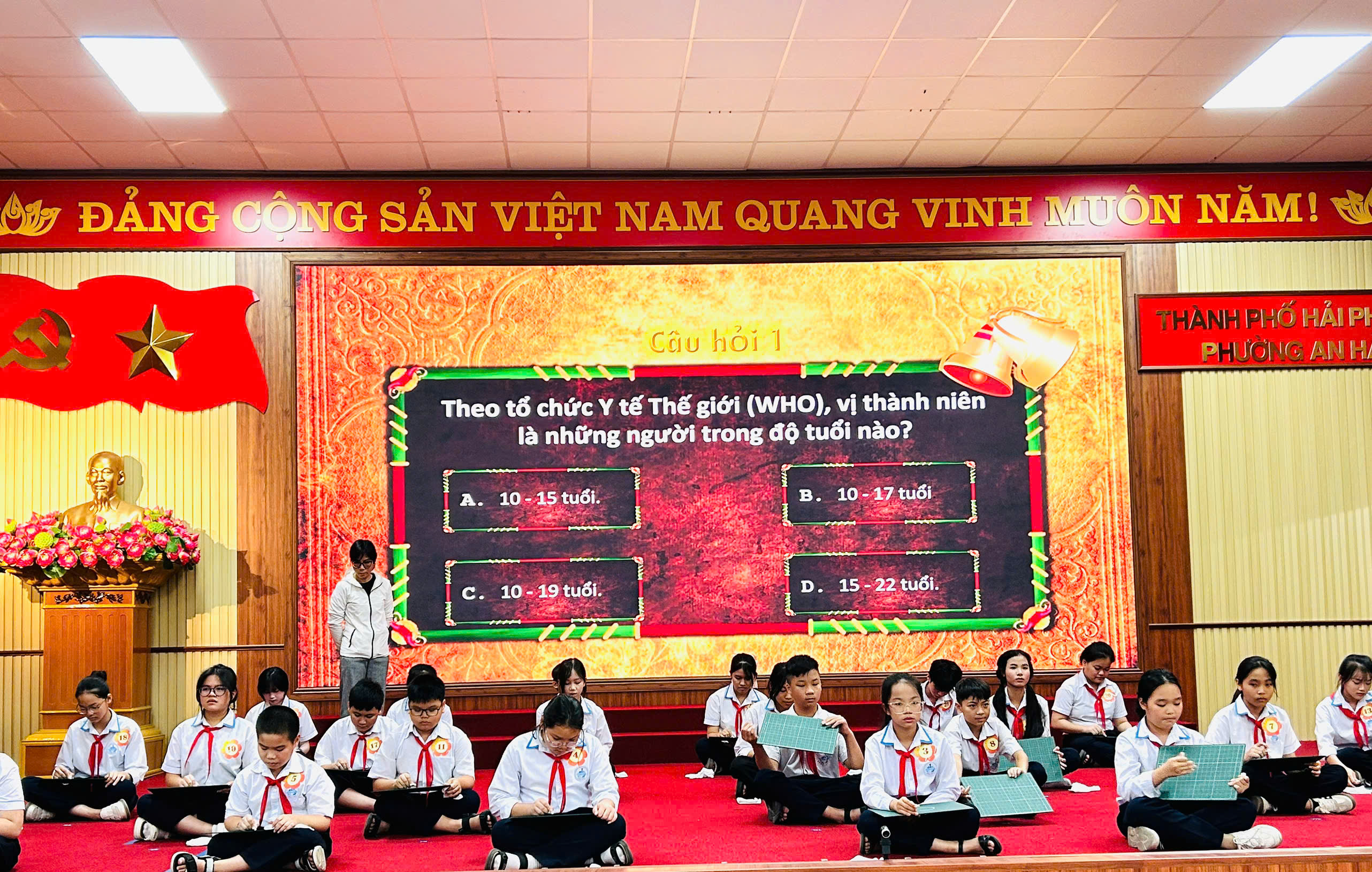 Chiều 23/10, UBND phường An Hải phối hợp với Chi cục Dân số và Trẻ em thành phố, Trường THCS Đồng Thái tổ chức chương trình truyền thông, giao lưu “Tìm hiểu kiến thức về dân số, bảo vệ chăm sóc trẻ em” năm 2025. Hoạt động được tổ chức dưới hình thức cuộc thi “Rung chuông vàng”, nhằm trang bị cho học sinh những kiến thức thiết yếu về dân số, sức khỏe sinh sản vị thành niên và quyền trẻ em.