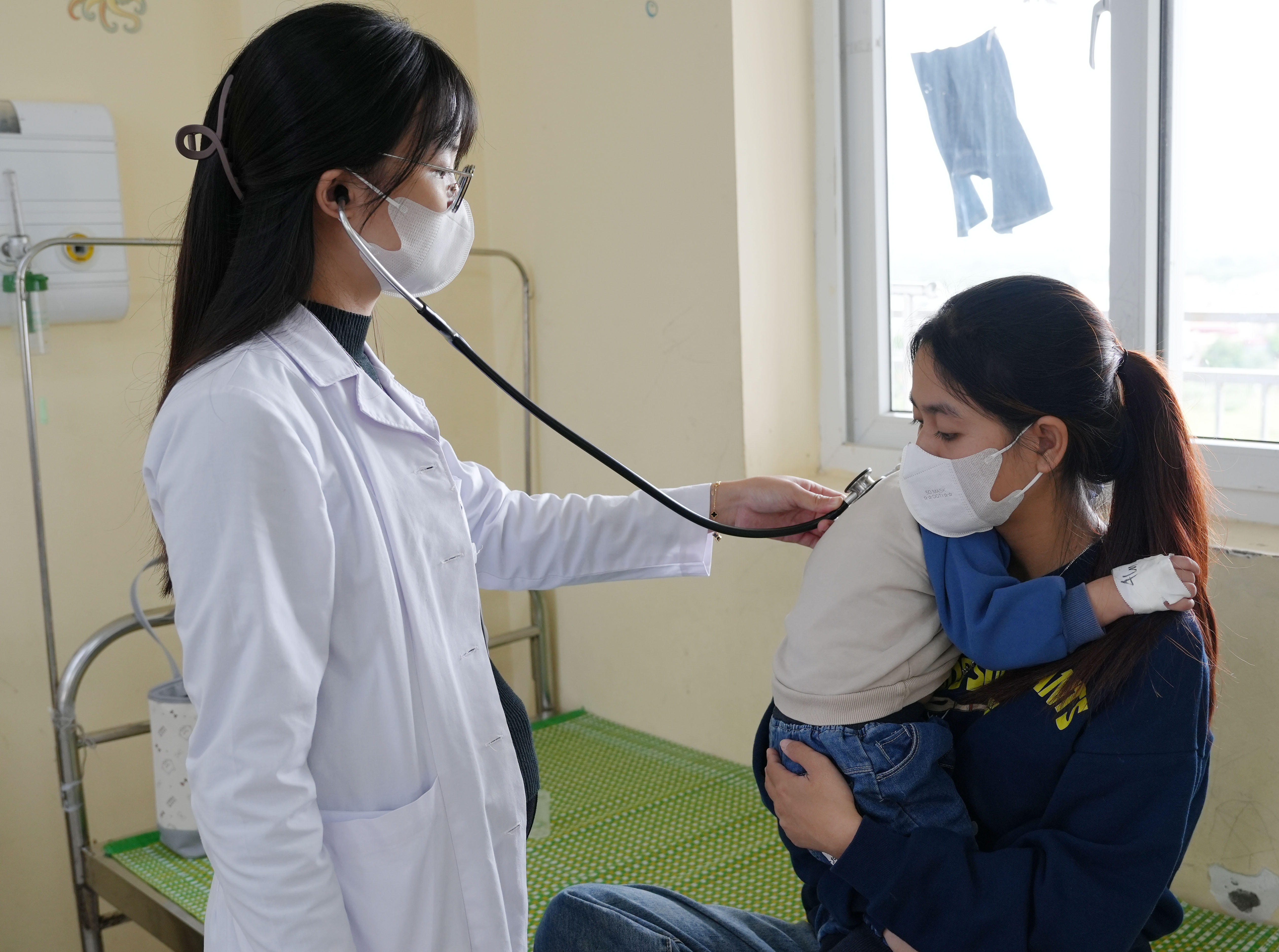 Bác sĩ Trần Hải Hà đang kiểm tra sức khỏe cho bệnh nhân bị nhiễm vi rút hợp bào RSV