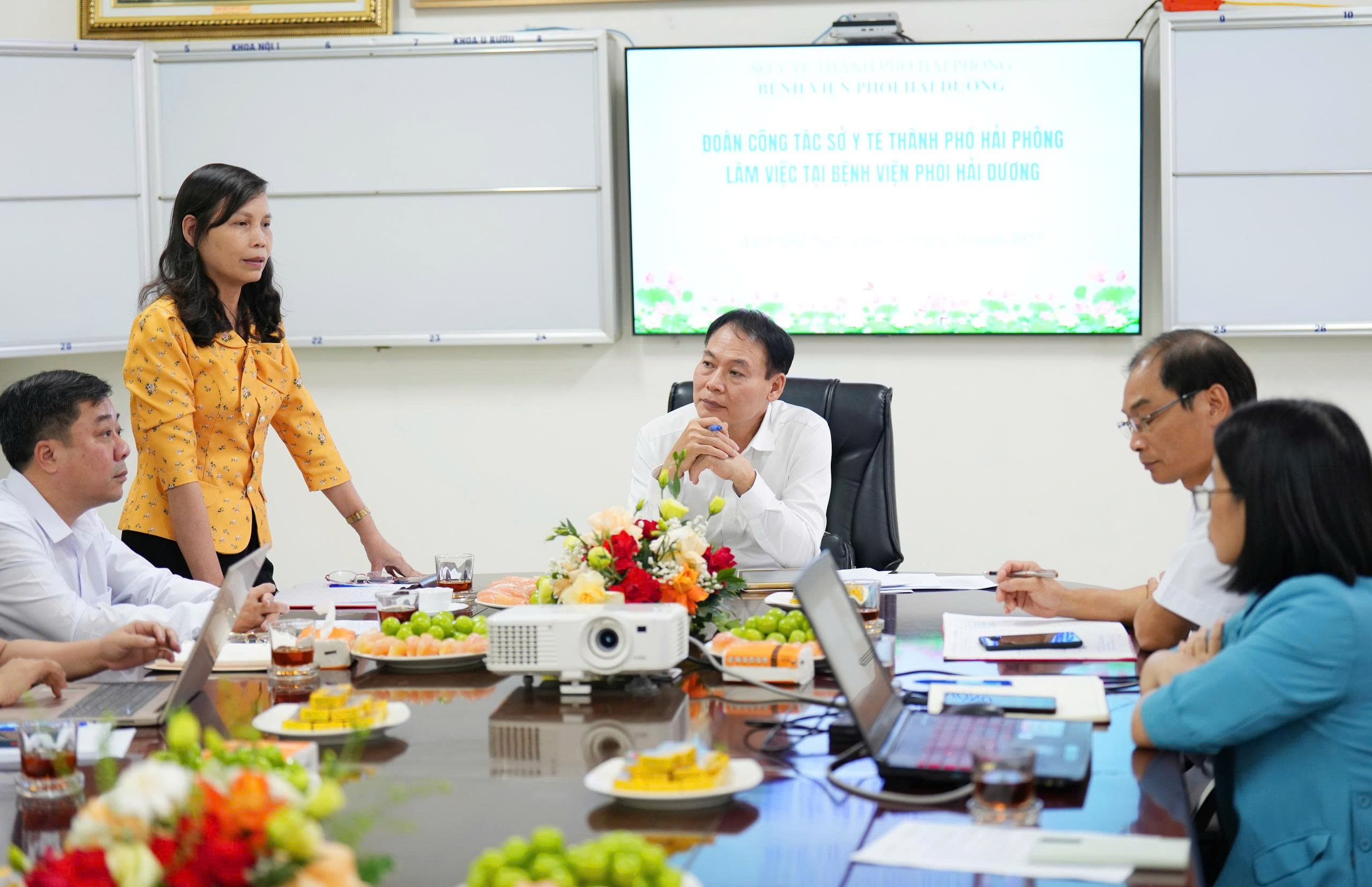 Phó Giám đốc Sở Y tế Nguyễn Thị Trung Chính phát biểu tại buổi làm việc với Bệnh viện Phổi Hải Dương