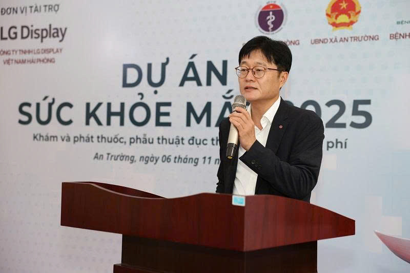 Phát biểu tại buổi lễ, ông Lee Doo Gwan - Phó Tổng Giám đốc Công ty TNHH LG Display Việt Nam Hải Phòng chia sẻ: “Tôi cảm thấy vô cùng xúc động và tự hào khi chương trình Sức khỏe mắt tiếp tục được lan tỏa tại xã An Trường. Bên cạnh phát triển sản xuất, LG Display luôn chú trọng thực hiện các hoạt động trách nhiệm xã hội.