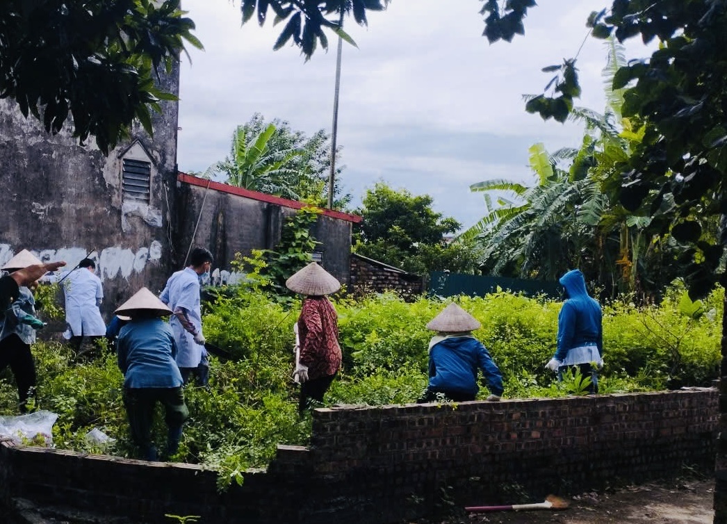 Người dân thôn Quý Dương, xã Mao Điền tổng vệ sinh môi trường và loại bỏ những nơi muỗi gây bệnh sốt xuất huyết trú ngụ