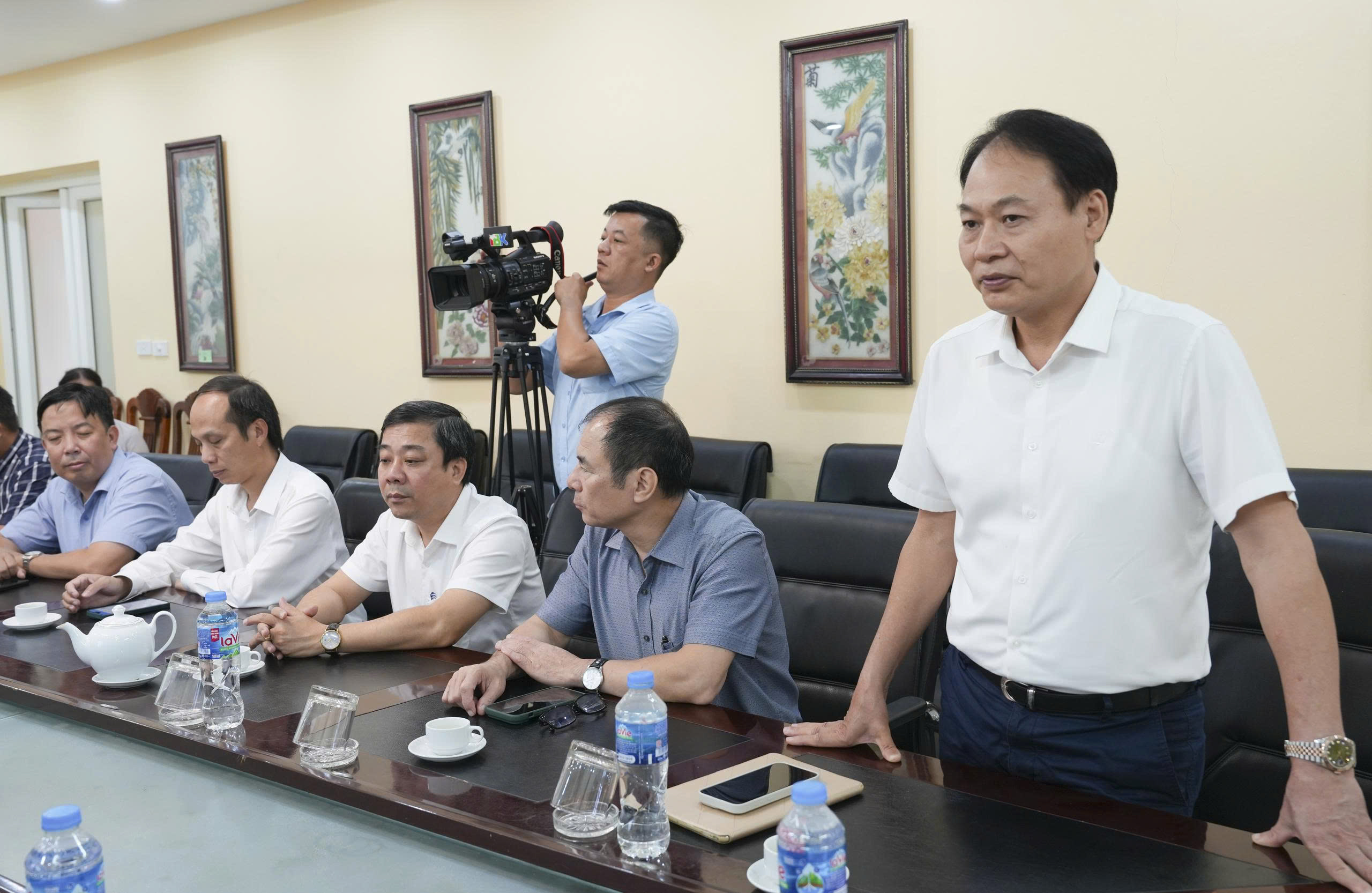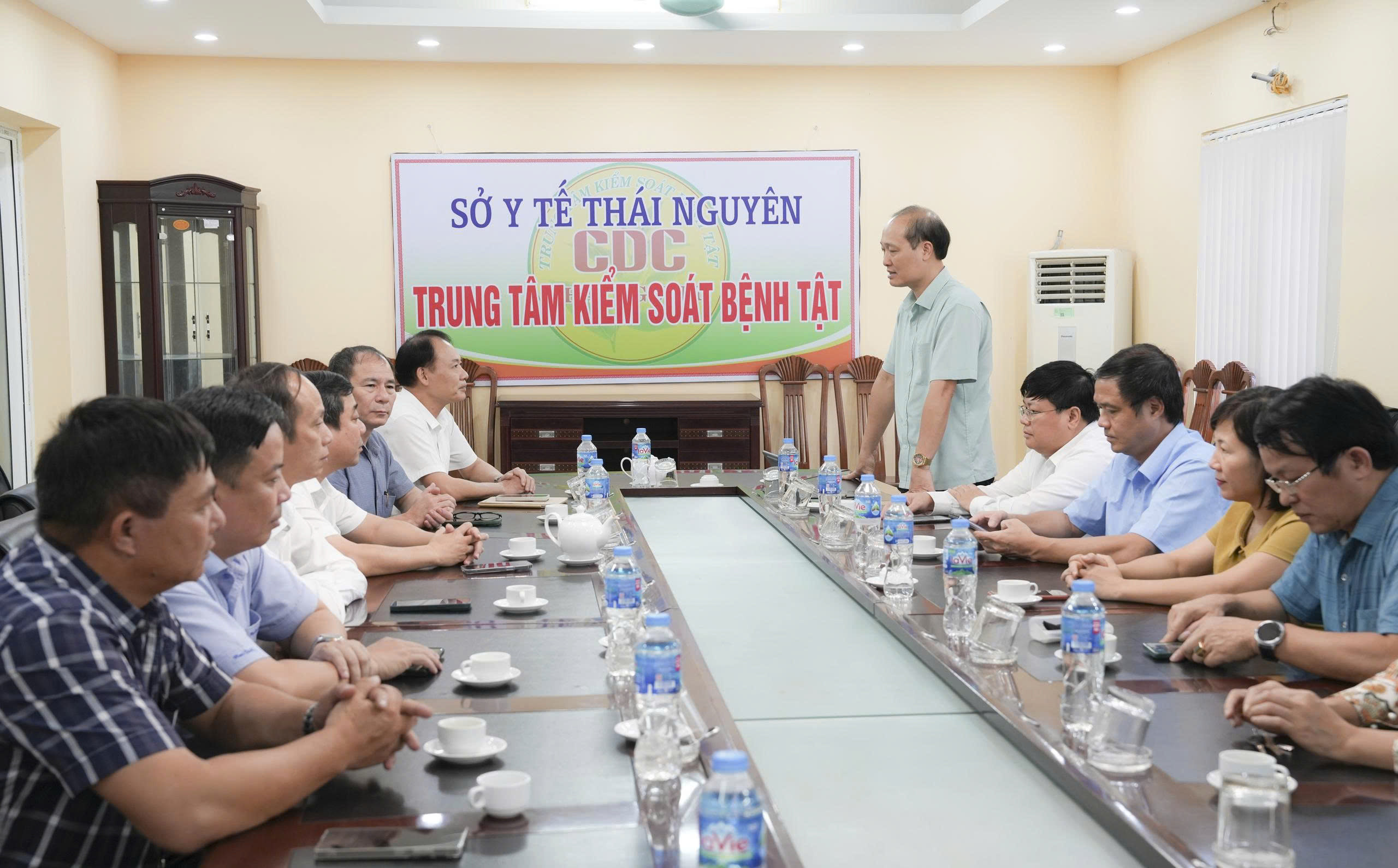 Giám đốc Sở Y tế Thái Nguyên Đặng Ngọc Huy khái quát với Đoàn công tác Sở Y tế TP Hải Phòng những thiệt hại đối với ngành y tế Thái Nguyên sau trận lụt