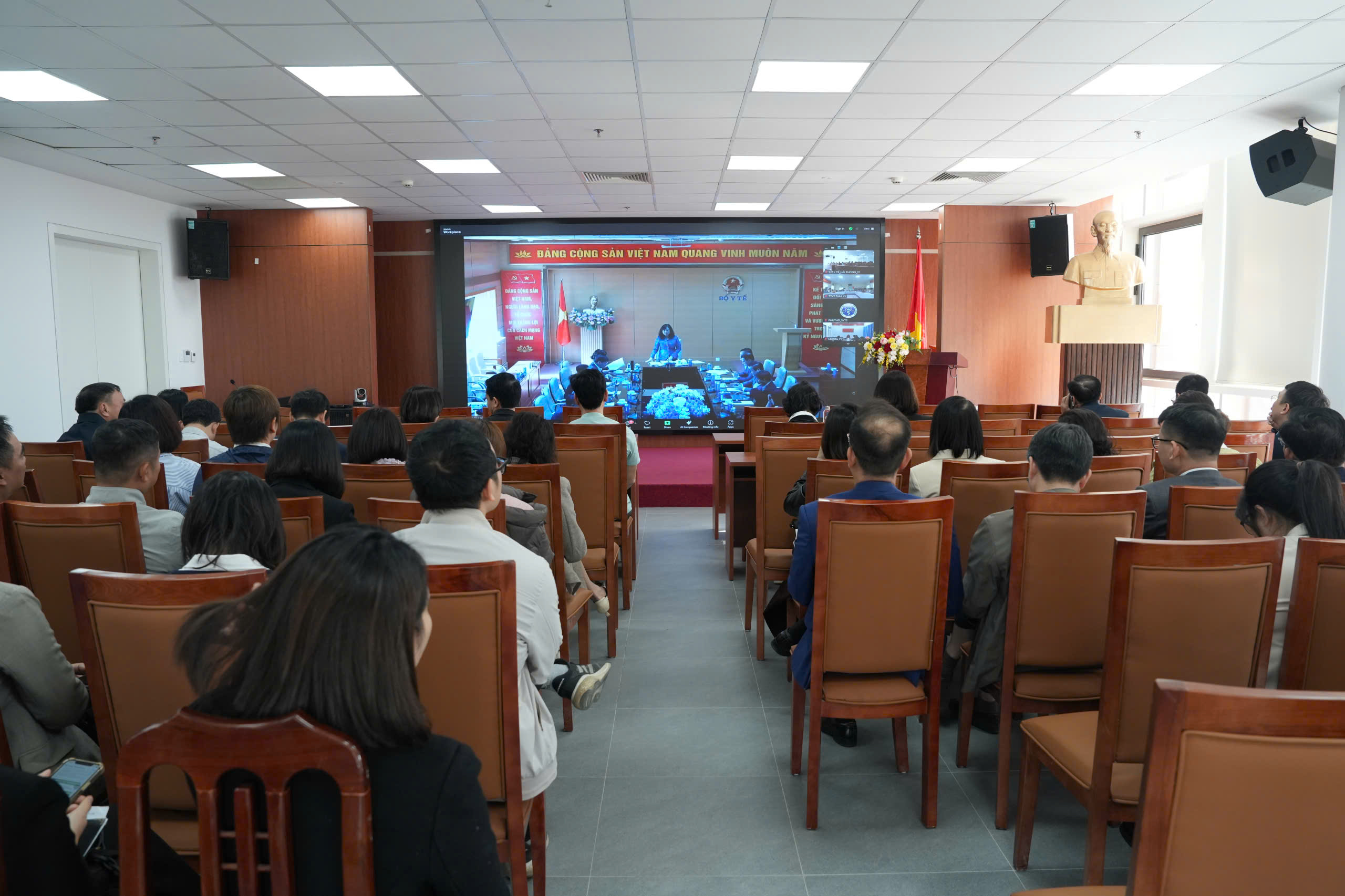 Hội nghị được tổ chức trực tuyến tới 300 điểm cầu trong cả nước với sự tham dự của lãnh đạo chủ chốt Sở Y tế 34 tỉnh, thành phố, Trạm Y tế xã và UBND một số xã, phường, đặc khu.