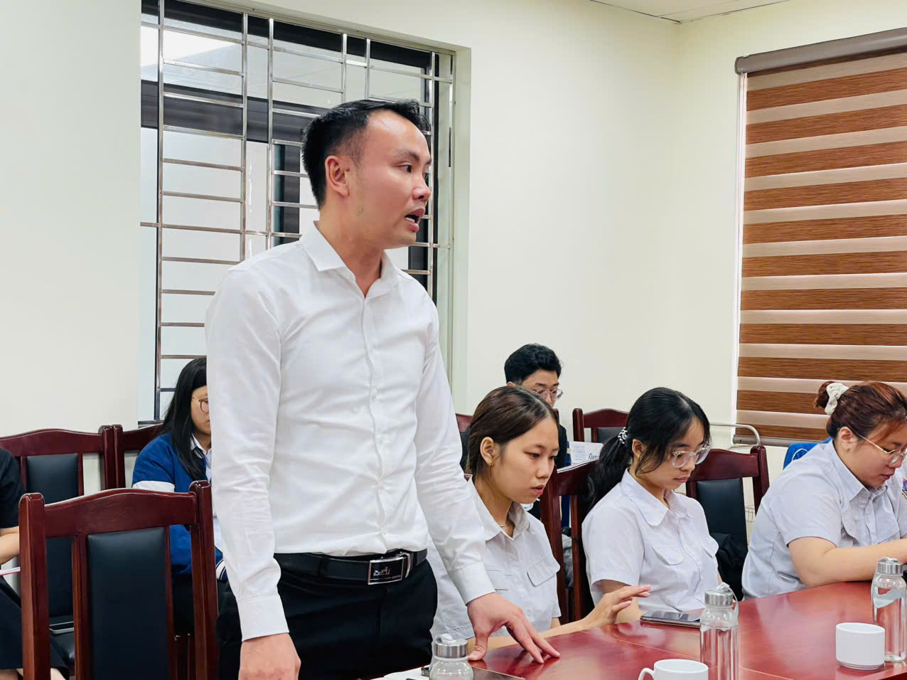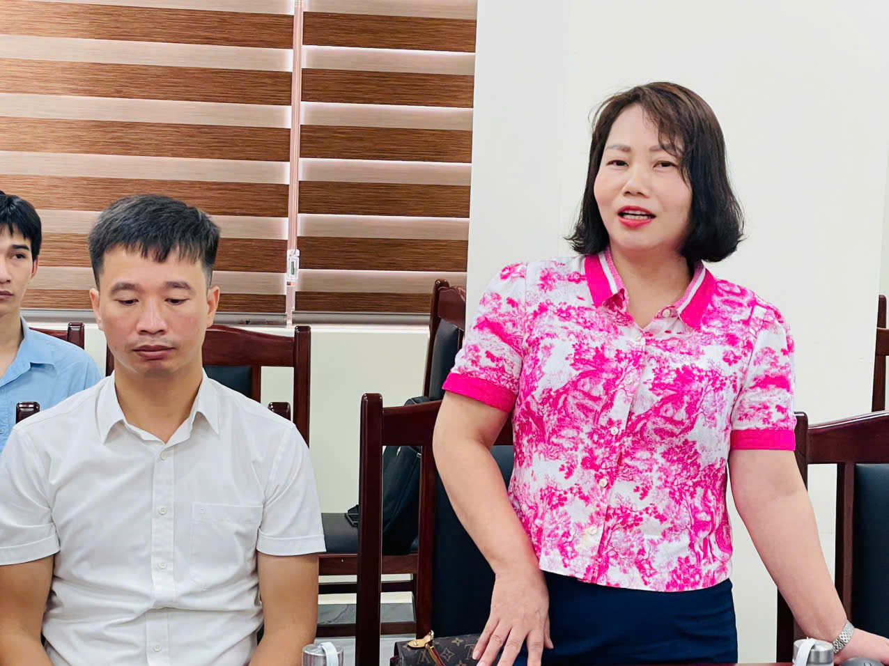 Bà Phạm Thu Thưởng, Phó Trưởng ban Công tác Công đoàn, Liên đoàn Lao động thành phố chia sẻ tại buổi làm việc